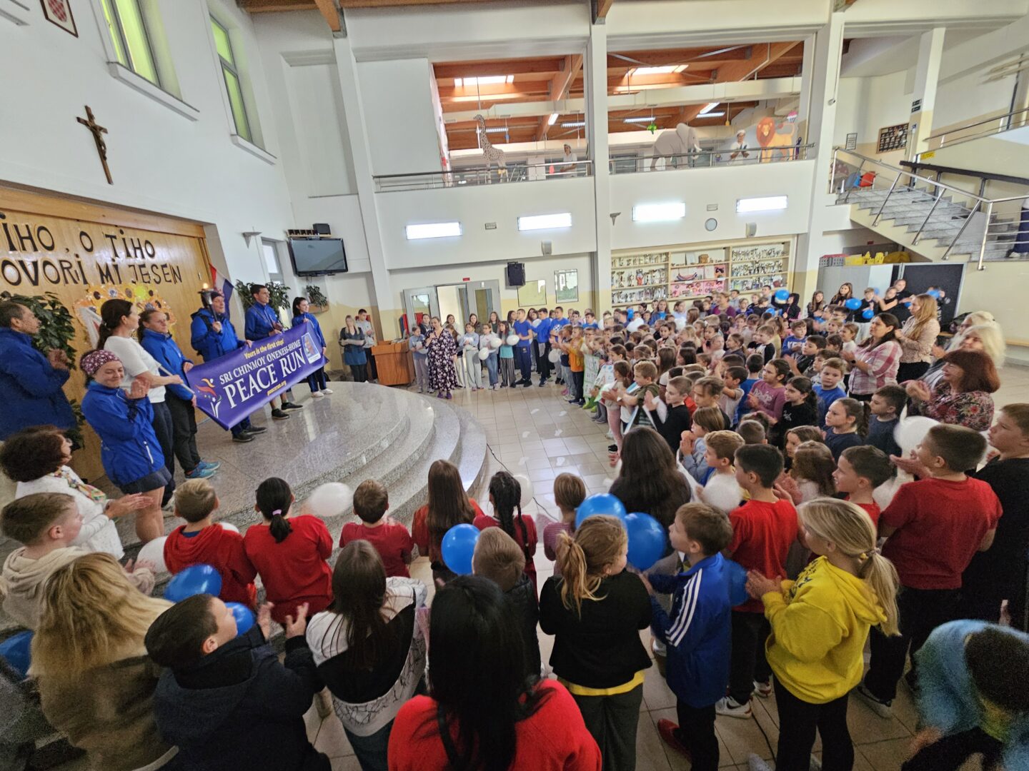 Učenici su bili oduševljeni igrama, plesom i pjesmom trkača koji su predstavili ciljeve i vrijednosti utrke te simbolično zapalili baklju mira koju nose diljem svijeta. Svaki je razred također pripremio i nekoliko najboljih likovnih radova koje su poklonili trkačima. Atmosfera je bila vesela i poticajna, a susret je završio zajedničkim fotografiranjem i kratkim druženjem.