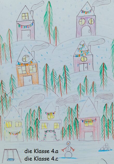 U sklopu projekta Weihnachts- und Neujahrskarten, učenice i učenici četvrtih i šestih razreda koji pohađaju nastavu njemačkog jezika izrađivali su i pisali božićne i novogodišnje čestitke. Pored toga, učili su pjevati neke od najpoznatijih njemačkih božićnih pjesama. Izuzetak je 6.b razred koji izvodi englesku pjesmu prepjevanu na njemački. Pored tradicionalnih čestitki svaka je razredna grupa kreirala virtualnu glazbenu čestitku na kojoj svima koji slave čestitaju Božić i Novu godinu, te izvode neku od spomenutih pjesama. Glazbena se čestitka otvara klikom na ilustraciju željene razredne grupe.